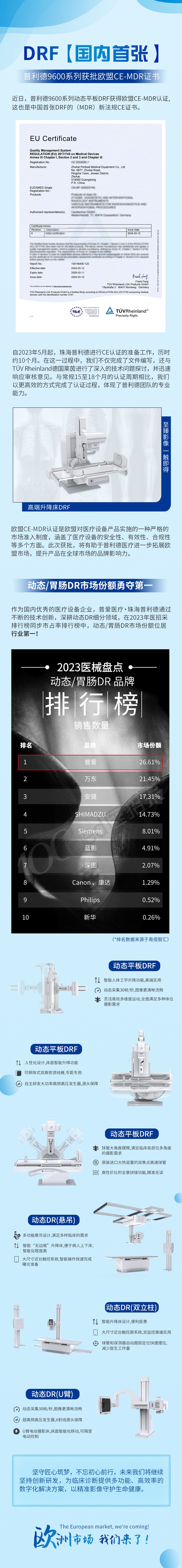 DRF國內(nèi)首張!普利德9600系列獲批歐盟CE-MDR證書